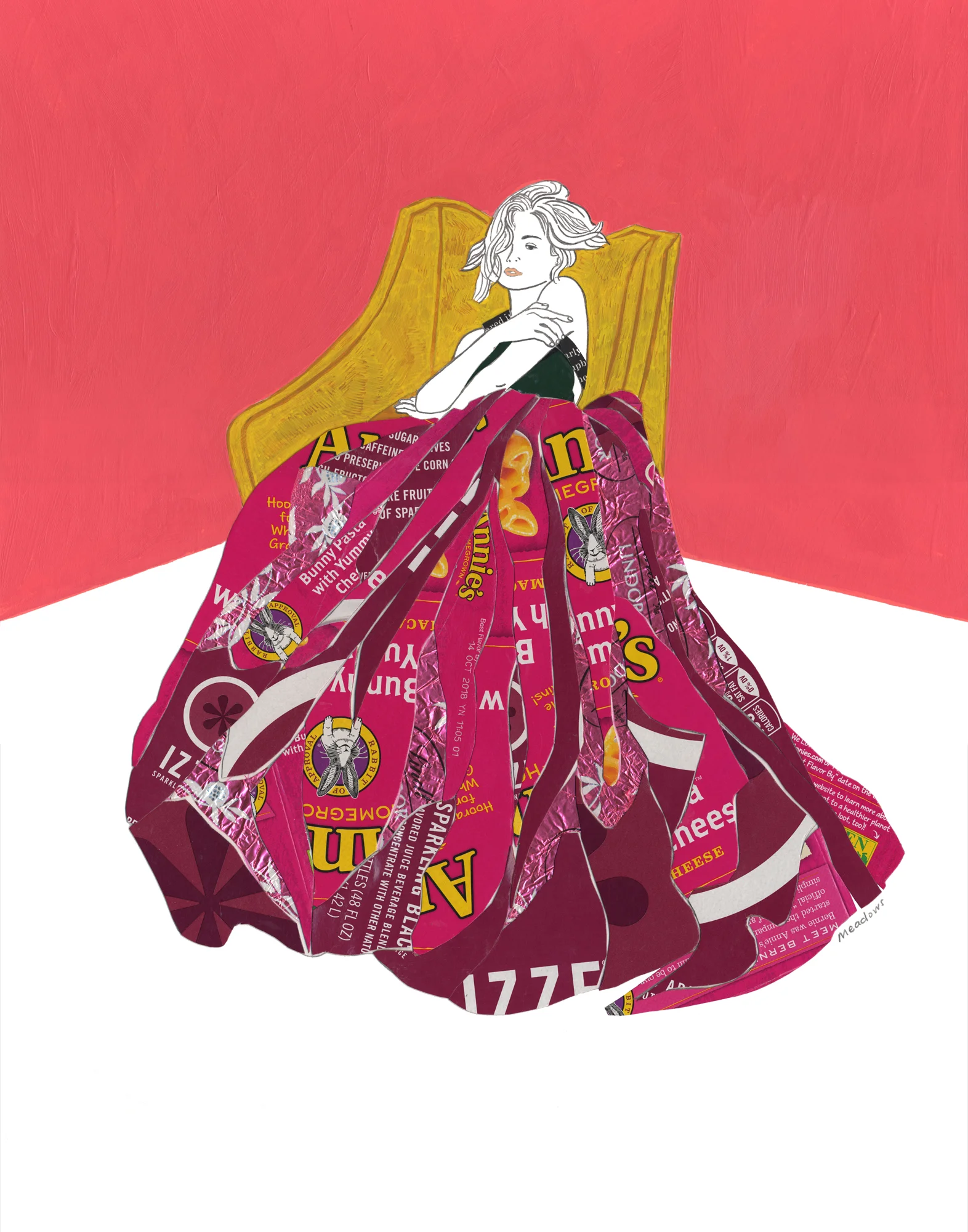 Supermodels adorned in recycled food packaging.